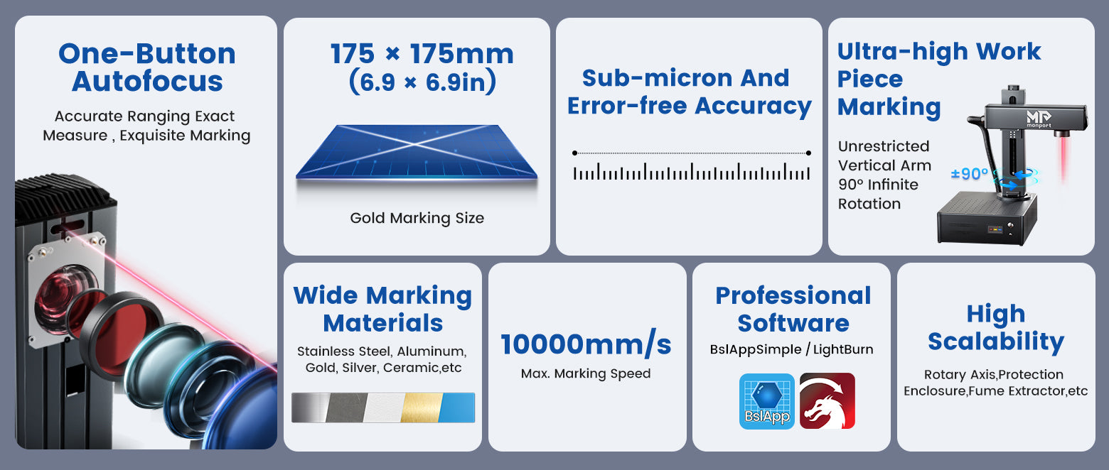 When comparing competitors, the Monport GA 30W desktop fiber laser clearly outshines. Its autofocus technology ensures flawless marking with just one click, significantly reducing errors compared to manual focusing methods.