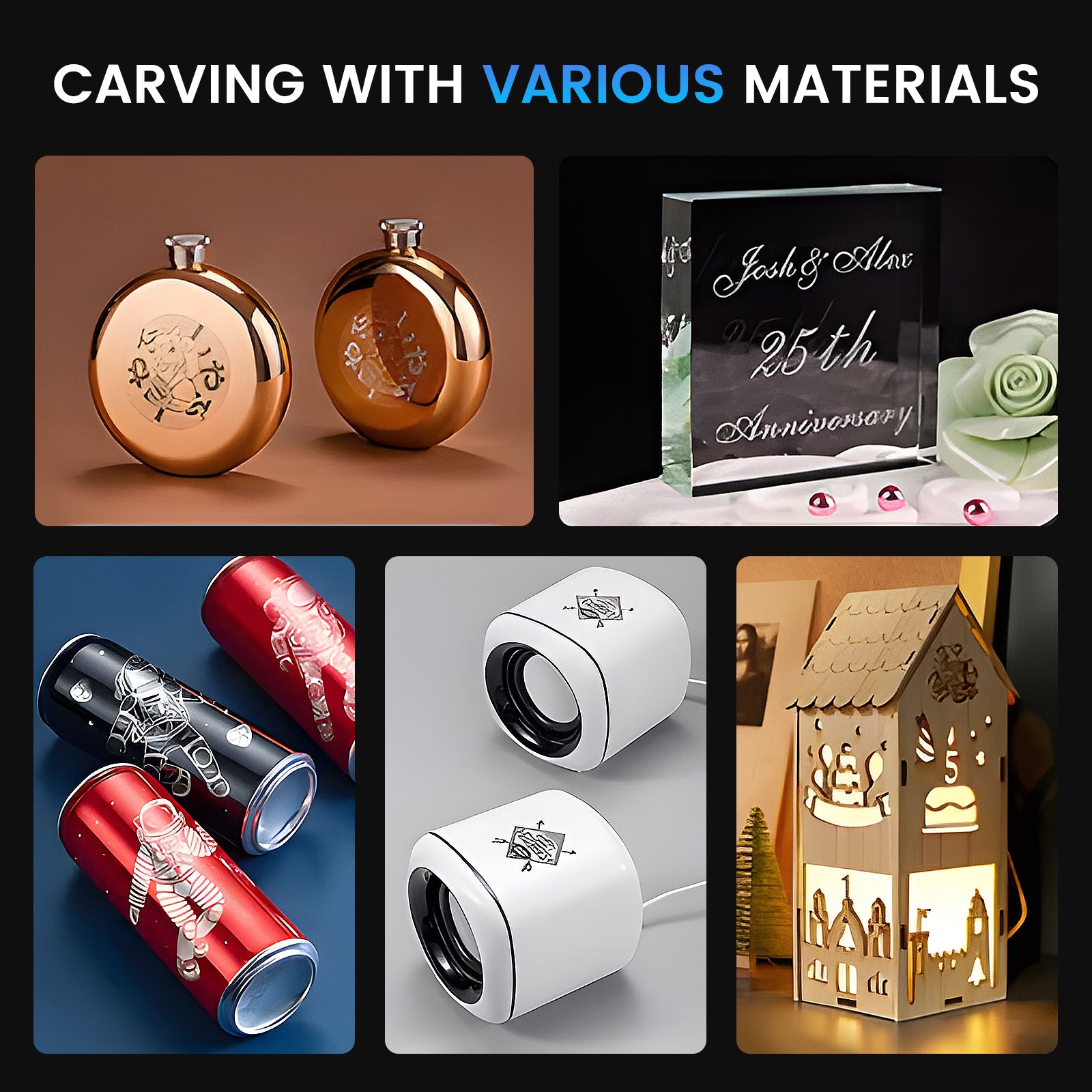 - Multi-Material Capability: It works on wood, acrylic, glass, fabric, coated metals, and more, offering endless creative possibilities.