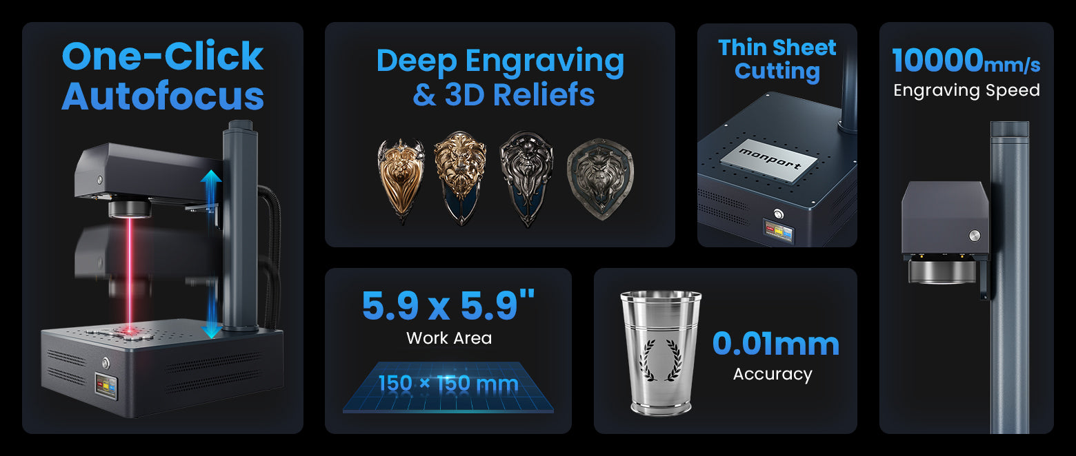 The Monport GM 50W Pro Integrated Fiber Laser Engraver & Marking Machine with AutoFocus is often mentioned when professionals compare a fiber laser for engraving based on value versus performance. It is not oversized, not underpowered, and avoids unnecessary extras that inflate price.