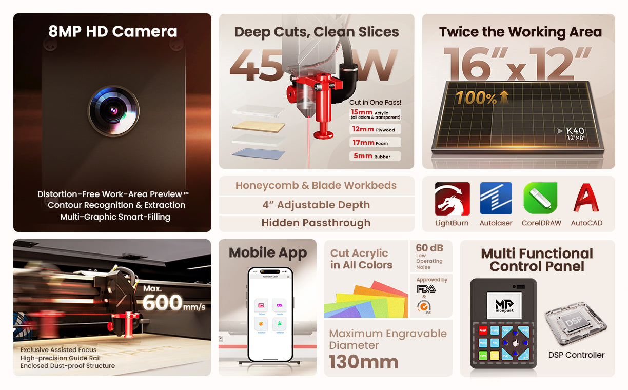 If you’re serious about business, your machine matters. The Monport Reno45 Pro Vision 45W Desktop CO2 Laser Engraver & Cutter is built exactly for this kind of work.
