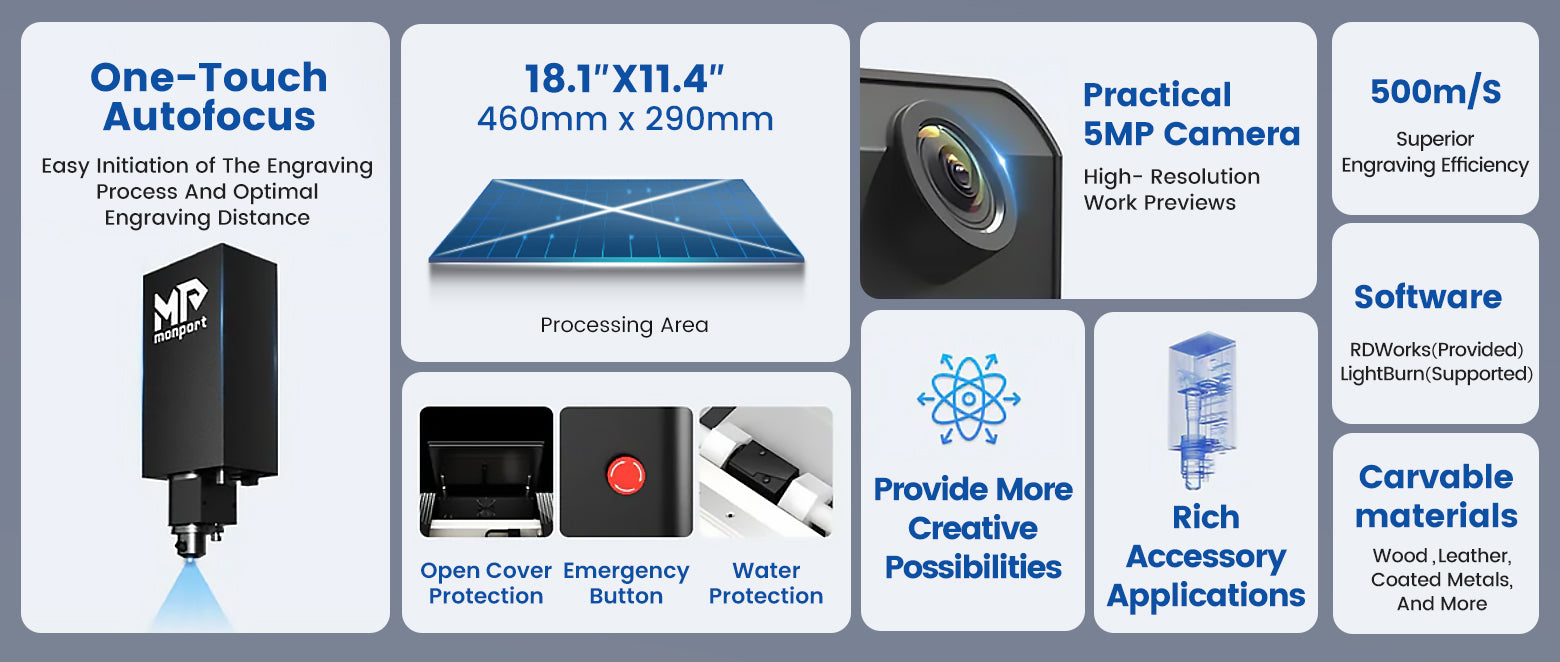 One-touch auto-focus, high-speed precision, and versatile material compatibility open up endless project opportunities.
