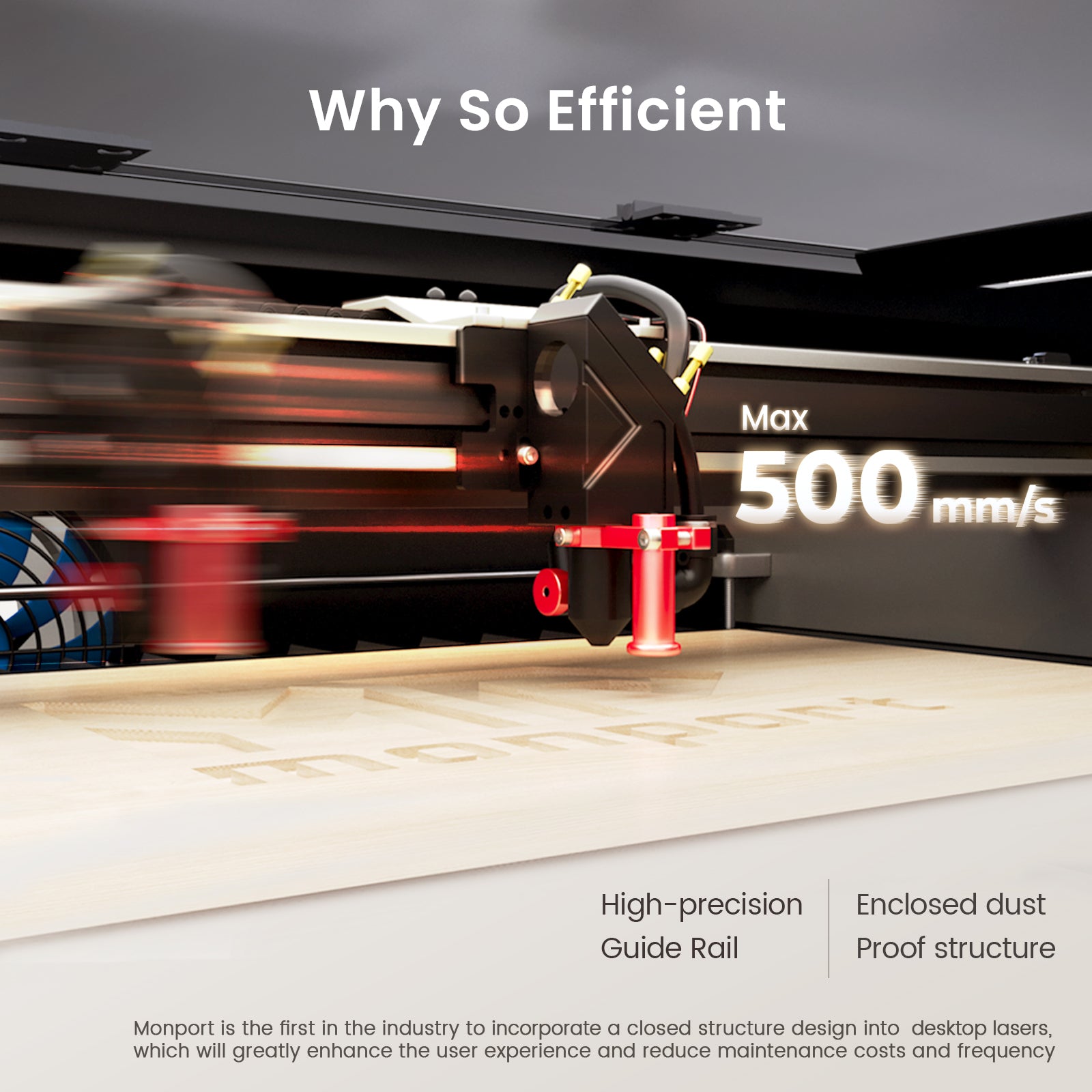 Because Monport has independently designed a brand new mechanism, including lightweight design, high-precision slides and customized motors. This is what makes the Reno45 so efficient.