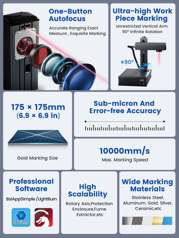 Equipped with a powerful 100W driver and 100W laser source, this system delivers striking color marking while maintaining sub-micron precision and error-free accuracy.