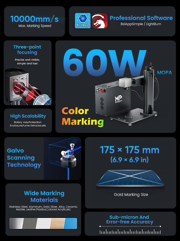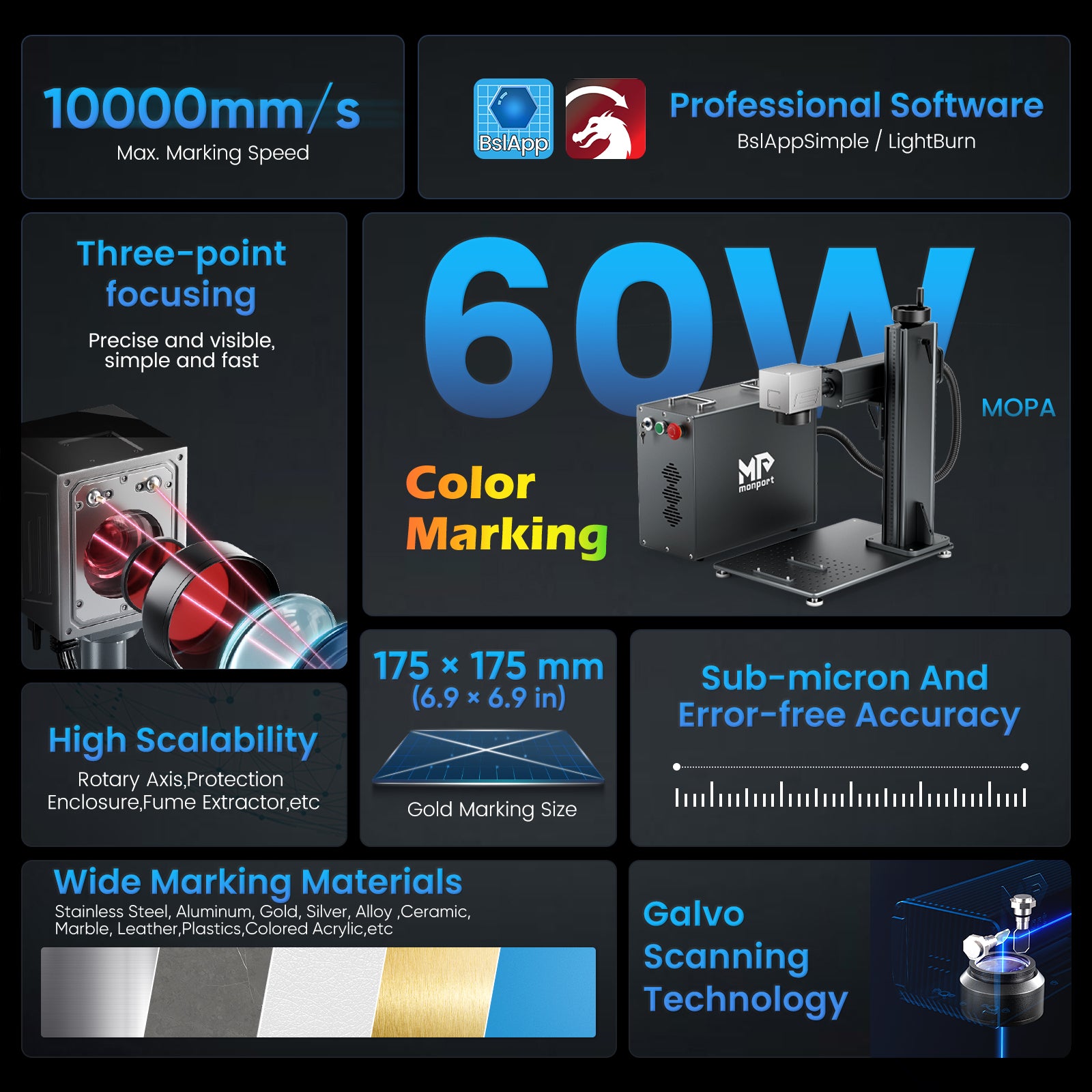 Monport GPro 60W Split MOPA Fiber Laser Engraver & Marking Machine With Manual Focus