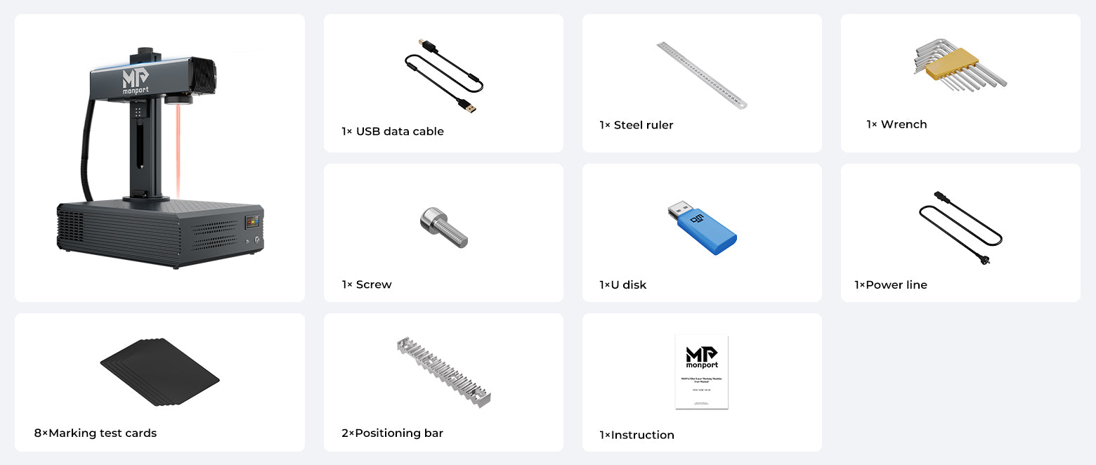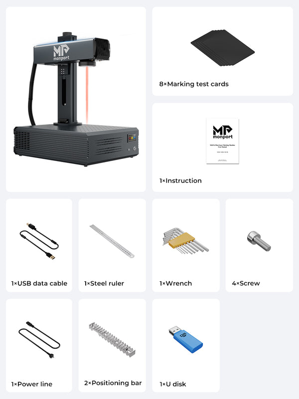Monport GA 100W MOPA Fiber Laser Integrated Engraver & Marking Machine with AutoFocus