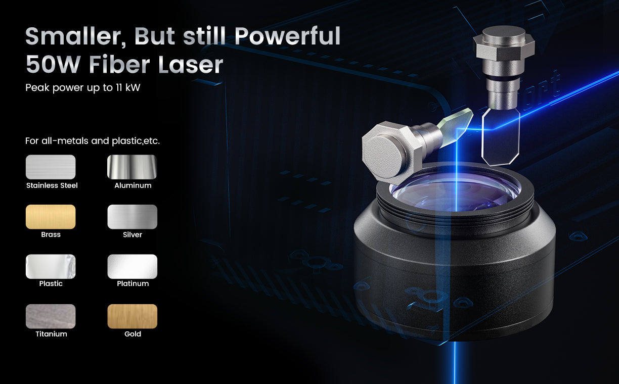 The brand new Monport fiber marking machine has a smaller size and lighter weight; Simultaneously maintaining the original high performance and a lifespan of up to 100000 hours.The fiber laser can engrave all metals. (gold, silver, copper, stainless steel, brass, titanium, etc.)