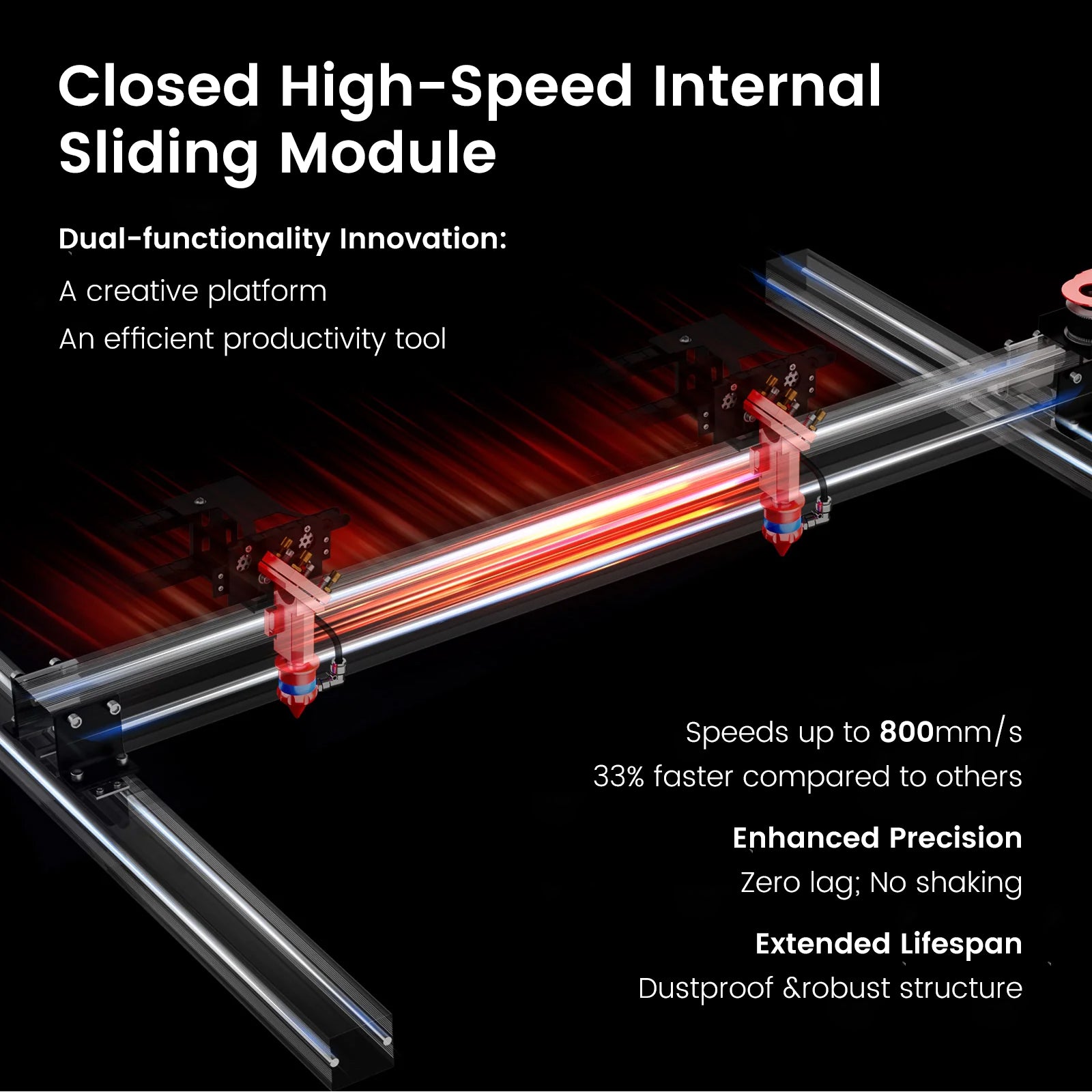 With a spacious 20*28āā work bed, and four-way pass-through for items extending the workbed, this engraving tool is designed for big projects. The high-quality metal honeycomb board and aluminum panel provide double protection, and it's moveable for thicker materials, ensuring a secure and stable environment for your work pieces.