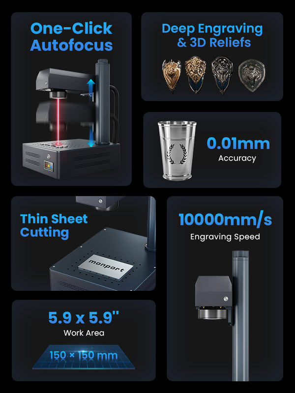 For the 50W fiber laser, the optimal working area is 150*150mm. Going beyond this size may lead to subpar engraving results or even distortion. Thanks to Monport's precise tuning, you can engrave at the edges with consistent power, ensuring no weak spots or loss of intensity.