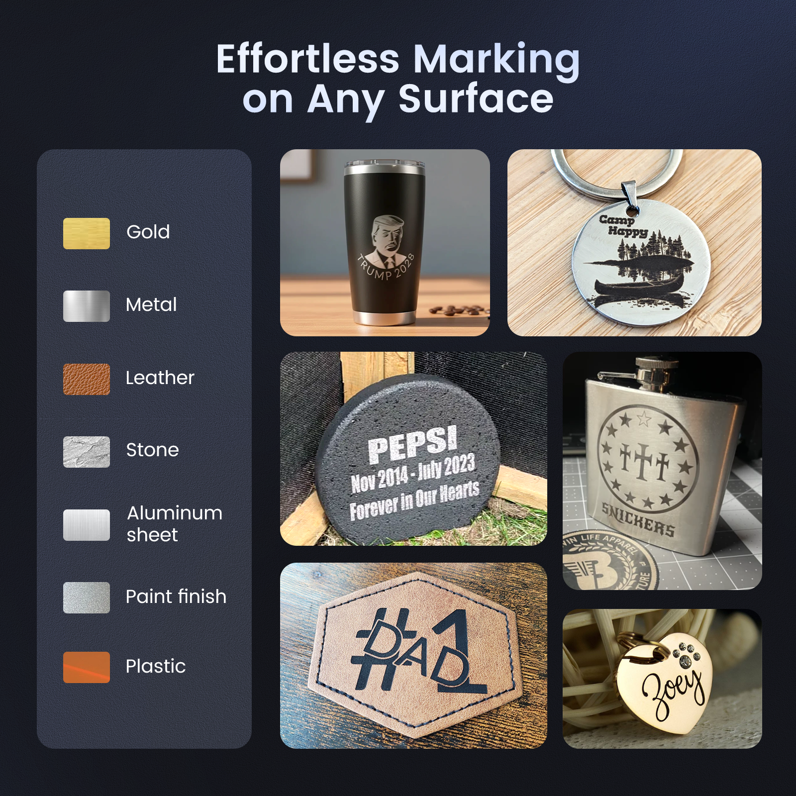 Unlock high-end engraving capabilities with processes like black marking on aluminum, creating durable, high-contrast designs that last. Ideal for premium finishes and professional-grade projects, offering precision and quality on a variety of materials.