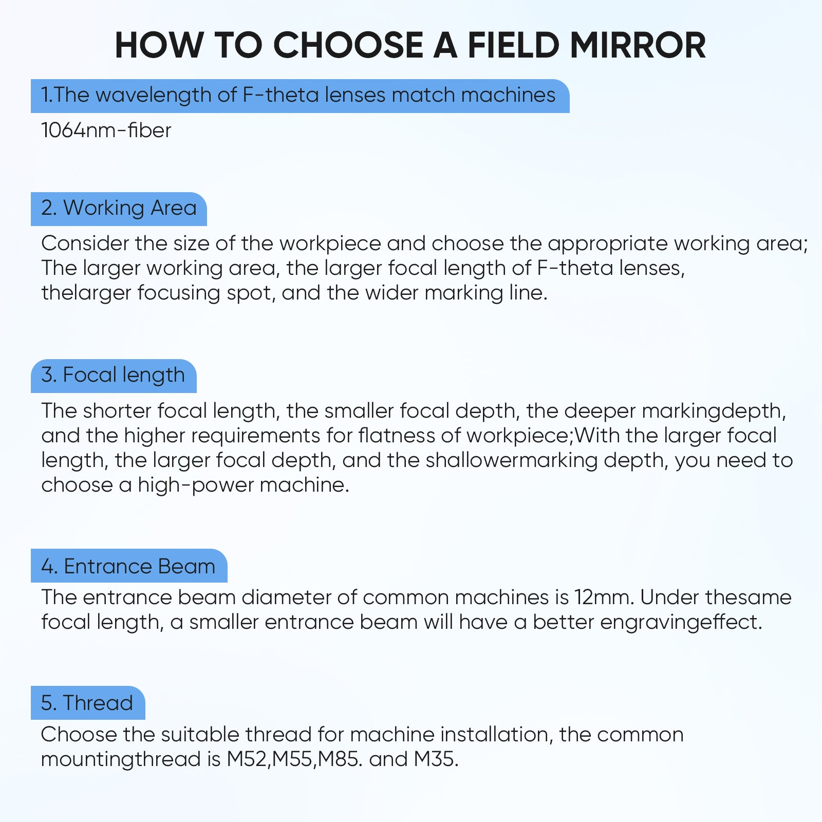 Standard M85x1 threads make the scanning lens easy to install and fast to replace the old lens of most fiber laser in the market, including the fiber markers from Monport.