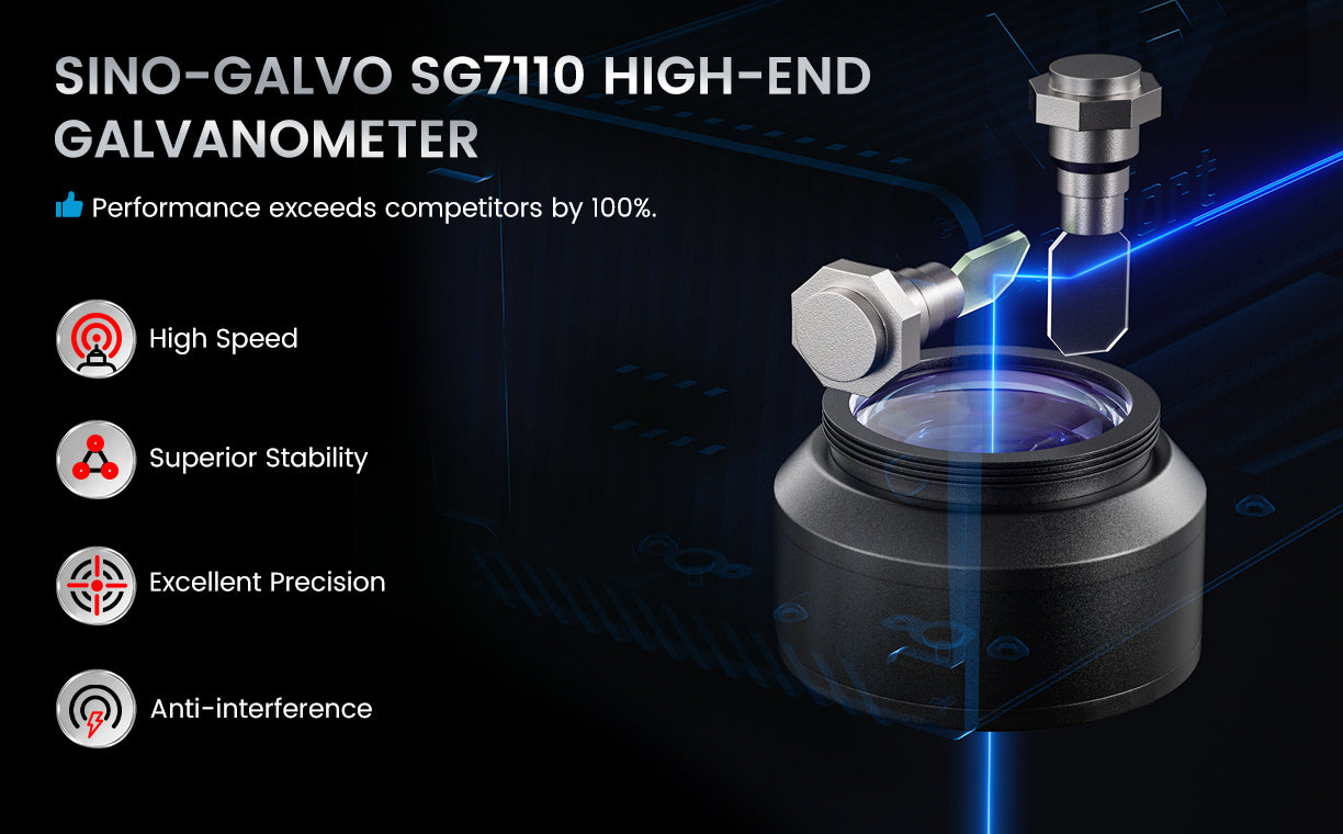 A superior fiber laser demands a top-notch galvanometer. Monport opts for the high-end Sino-Galvo RC1001 galvanometer for exceptional stability, precise positioning, rapid marking speed, and robust anti-interference capabilities. The overall performance surpasses other brands by 100%.