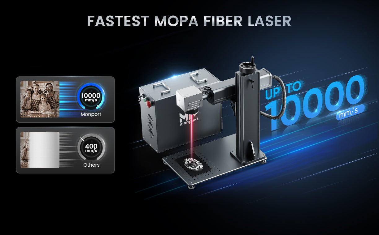 Boasting an unparalleled marking speed up to 10000mm/s, Monport GPro MOPA Fiber Laser is designed to cater to the most demanding industrial and creative applications, ensuring that your projects are not only completed with precision but also with an efficiency that sets new industry standards.