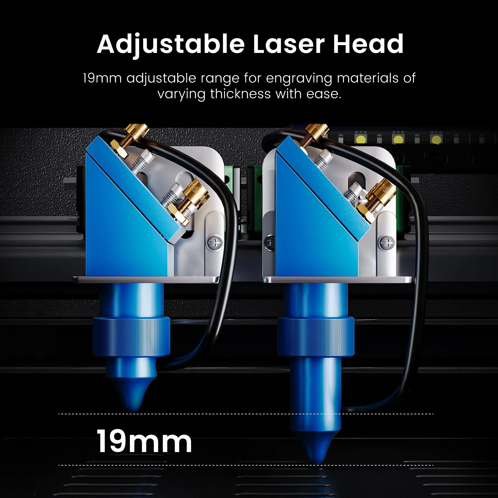 The Monport 40W Pro boasts a suite of enhanced features, including a 19mm Adjustable Laser Head, Professional-Grade Metal Rails, and a top-tier mirror holder. Together, these upgrades ensure a refined engraving experience for users.