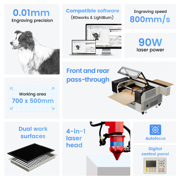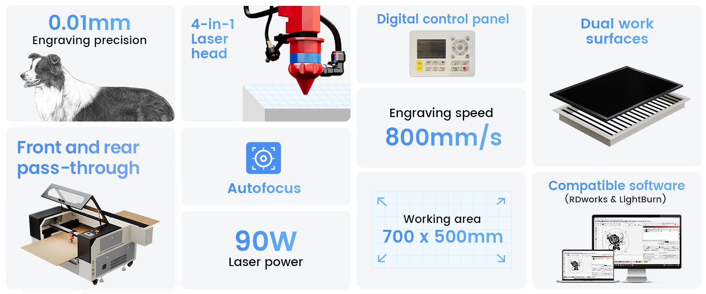 - Enhanced laser power and improved efficiency: superior to 80W and more cost-effective than 100W alternatives.