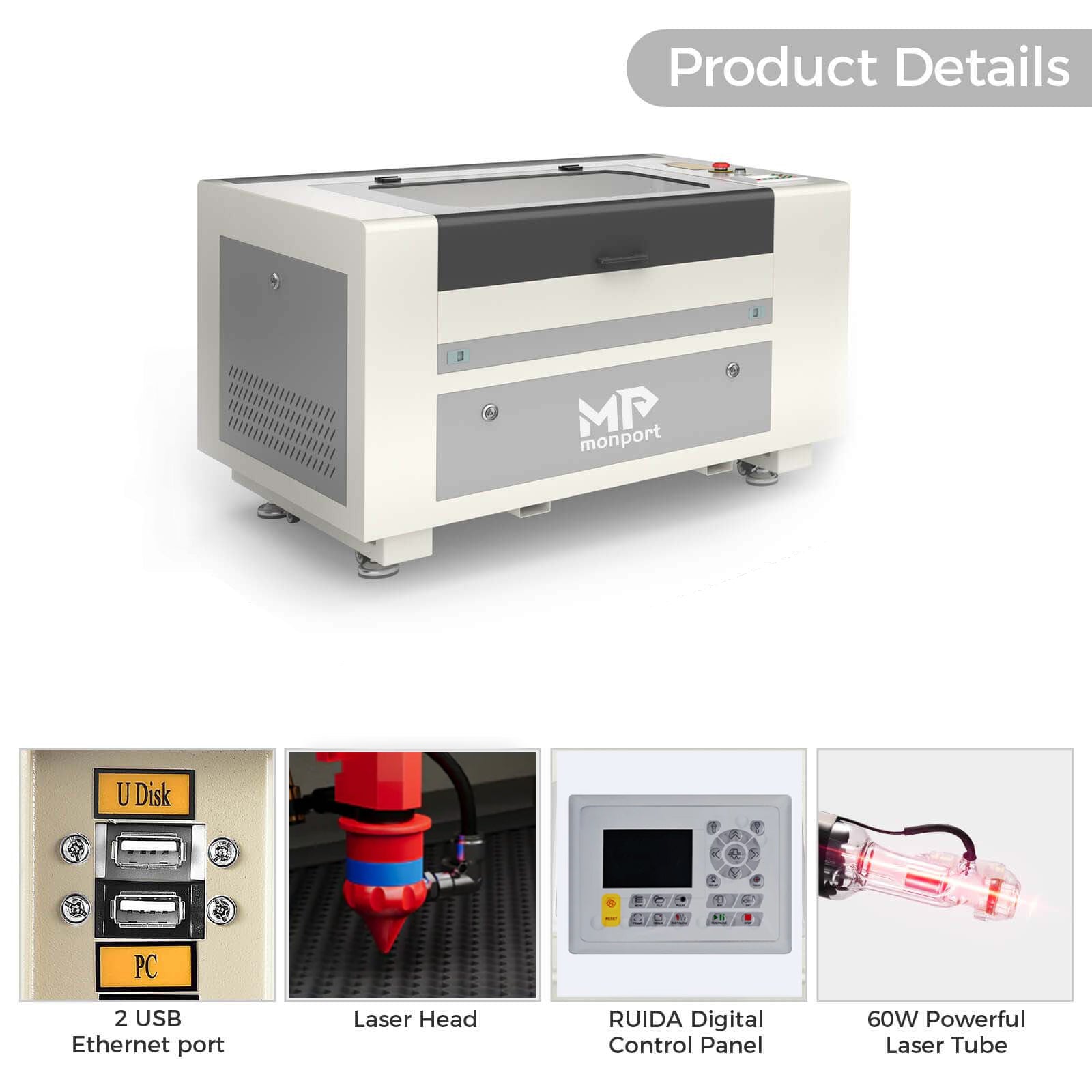Monport 60W CO2 Laser Engraver & Cutter (24" x 16") with Autofocus