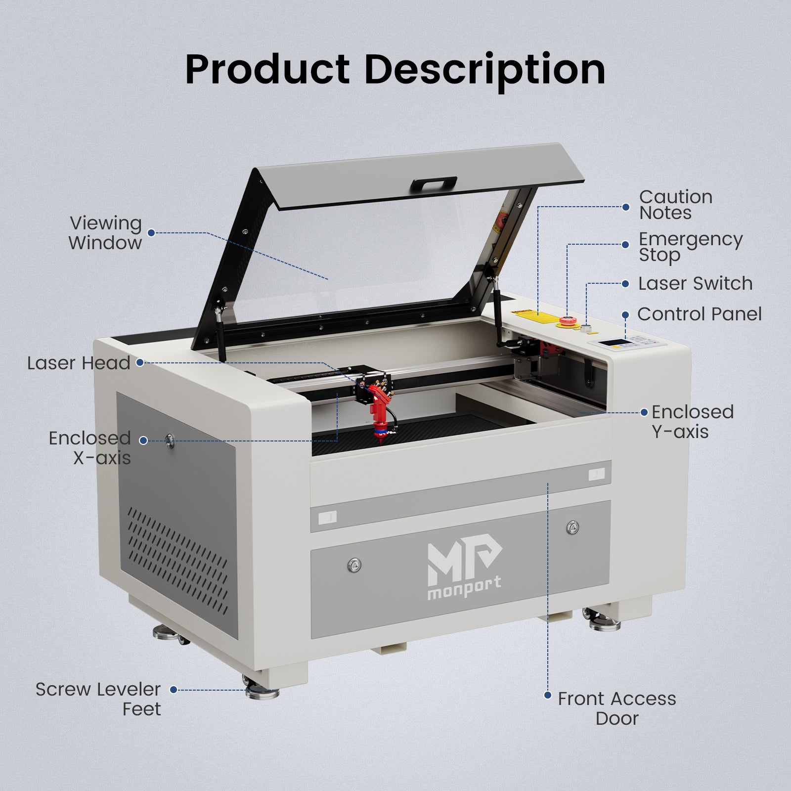 Monport 60W CO2 Laser Engraver & Cutter (24" x 16") with Autofocus
