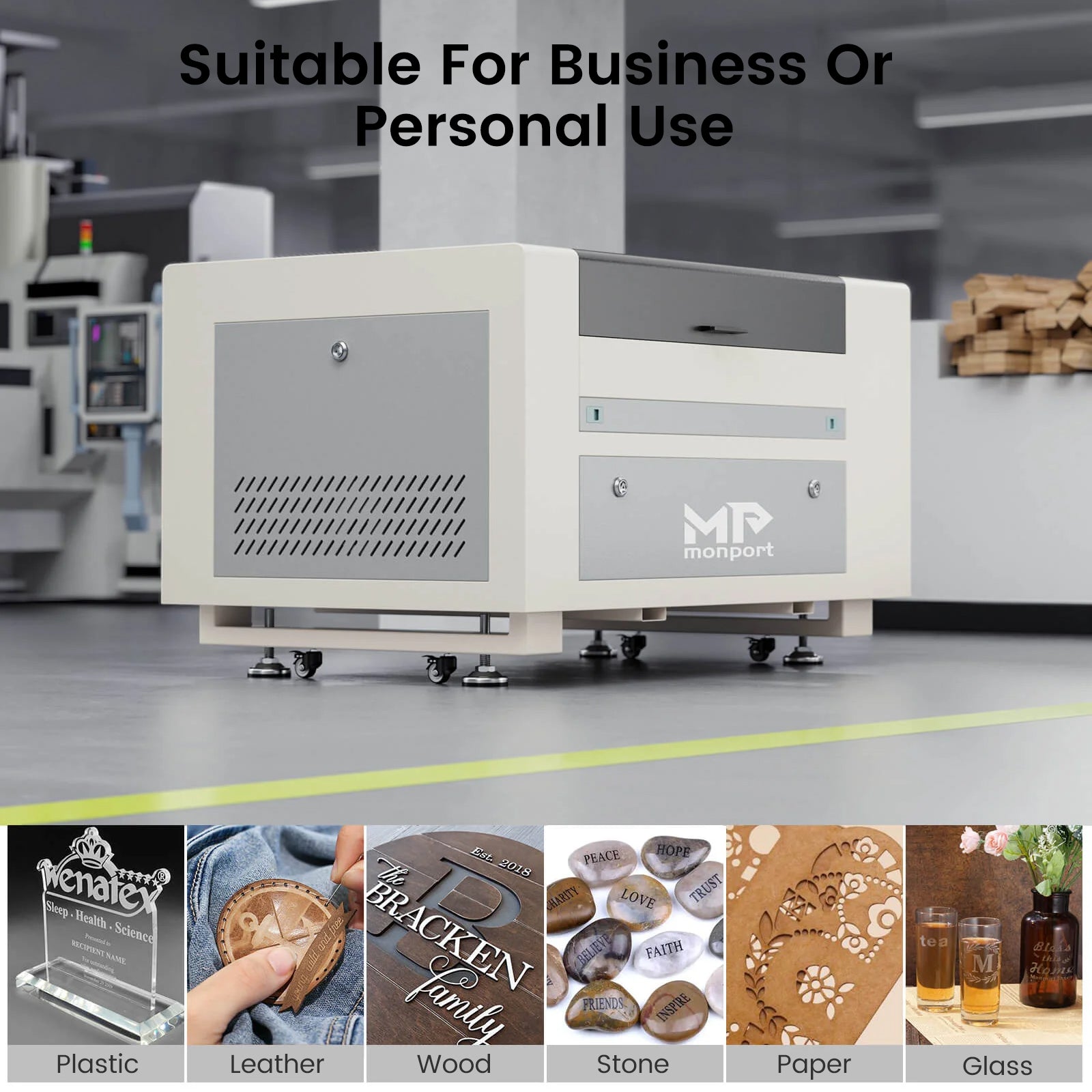This machine can only engrave on painted metal, it cannot engrave directly on metal. If you want to engrave metal, we recommend you consider a laser laser. Monport fiber lasers can engrave on all kinds of metal including Stainless Steel, Aluminum, Gold, Silver, Alloy ,Ceramic,Marble, Leather,Plastics,Colored Acrylic etc.
