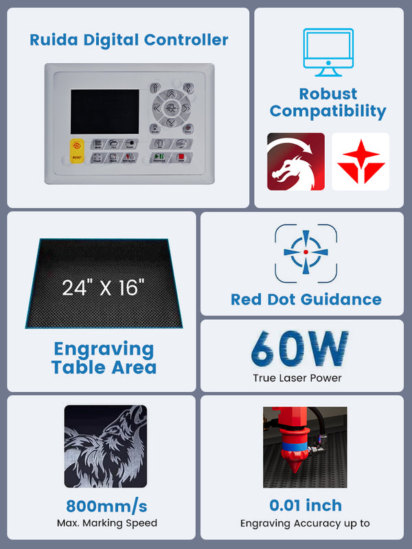 | Product Name | 60W CO2 (24" x 16") with Autofocus | 80W CO2 (24" x 16") with Autofocus |